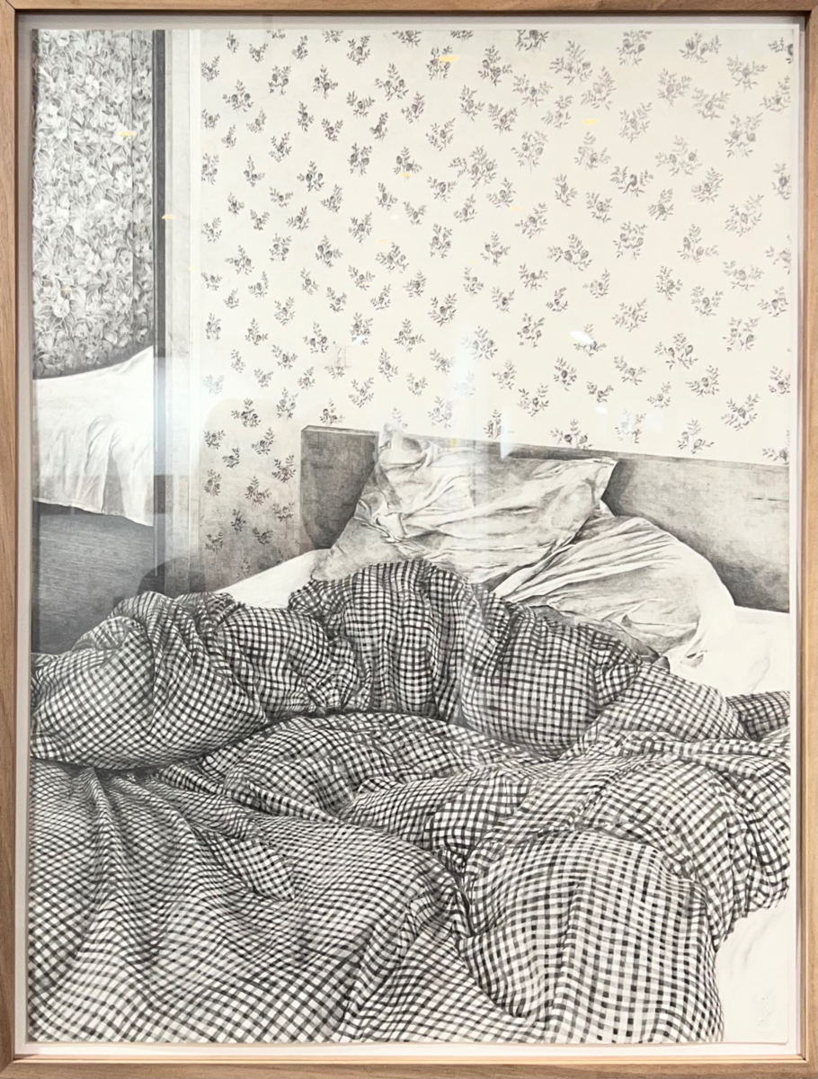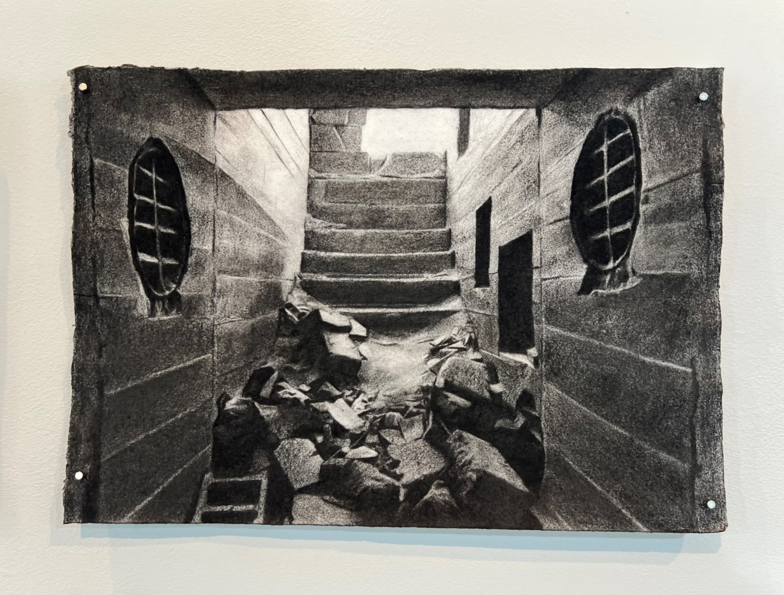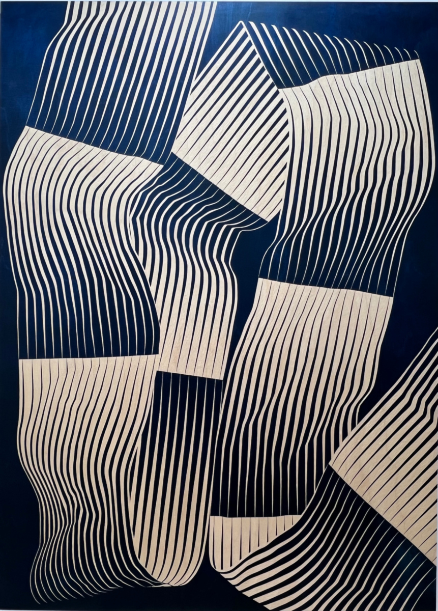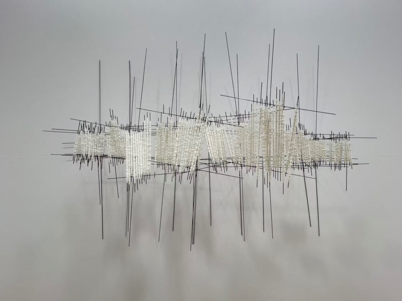 Daniel Templon expose notamment des dessins sur papier de la série Éclats de Philippe Cognée récemment exposée à Bruxelles, dans lesquels les fragments de fusain incrustés dans l’acrylique apportent un relief particulier. Autre candidate du prix Drawing Now 2026, la Polonaise Katarzyna Wiesiolek exposée par Eric Dupont gratte la surface du papier avant d’y déposer des pigments qui s’incorporent ainsi au support. Représentée par la galerie Univer, l’artiste grecque EVDOXIA compose des sculptures faites de tiges métalliques et de fil dont les ombres projettent sur les murs des dessins fluctuant au gré des sources de lumière.