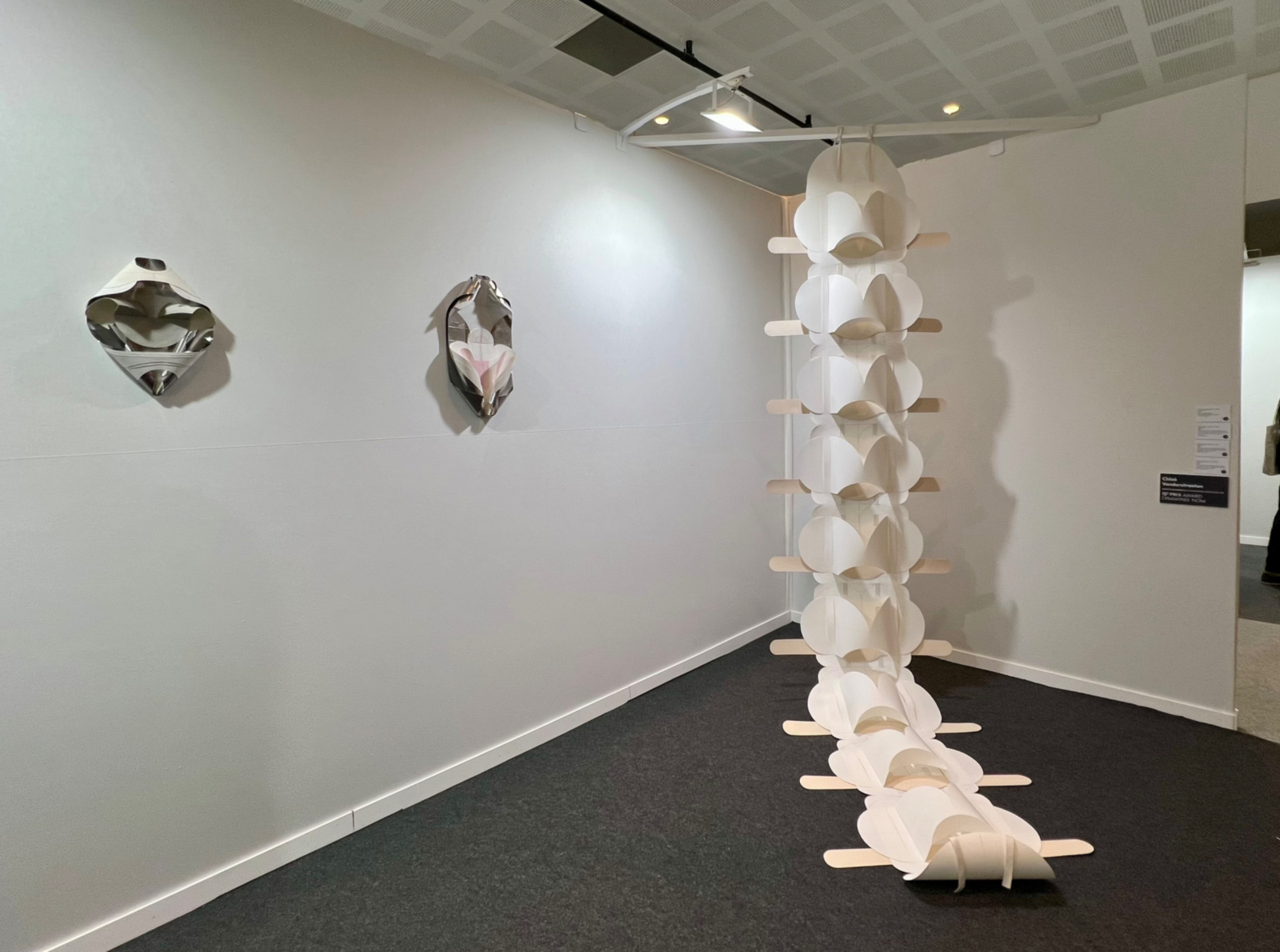 La galerie Traits libres présente les sculptures en papier découpé et plié, parfois associé à l’aluminium, de Chloé Vanderstraeten, dont le travail a été couronné mercredi du prix Drawing Now 2026. Le prix, qui célèbre cette année sa quinzième édition, consiste en une dotation de 10.000€ pour la production d’une exposition de trois mois au Drawing Lab accompagnée d’un catalogue l’an prochain, et d’une dotation de 5.000€ offerte par la société Conté, à laquelle s’ajoute une dotation matérielle de 1.000€ du même sponsor pour chacun des finalistes (au nombre de cinq cette année).